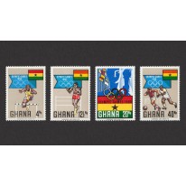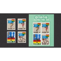 Na każdym walorze widnieje tradycyjny element znaczków ghańskich - flaga Ghany.
