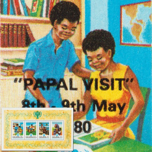 Seria w bloku wydana pierwotnie wcześniej tego samego roku z okazji Międzynarodowego Roku Dziecka, tym razem z nadrukami upamiętniającymi wizytę papieża Jana Pawła II w Ghanie.