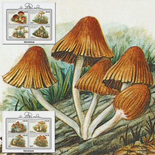 Seria w dwóch blokach, na znaczkach której widnieją następujące gatunki grzybów: