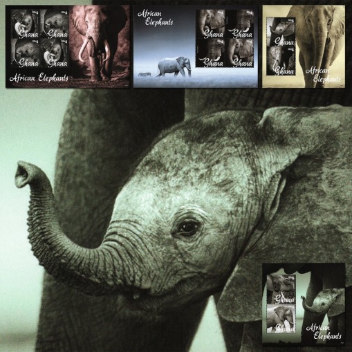 Seria w czterech arkuszach, na znaczkach której widnieje słoń afrykański.