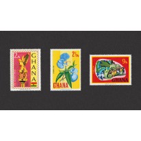 Na prawie każdym z walorów tej serii widnieje tradycyjny element znaczków ghańskich - flaga Ghany - a także inne motywy: