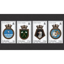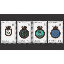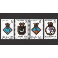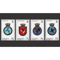 Komplet dziesięciu serii wydawanych co roku w latach 1982-1991, na znaczkach których widnieją herby brytyjskich okrętów wojennych, kolejno: