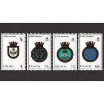 Na znaczkach widnieją herby następujących brytyjskich okrętów wojennych: