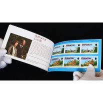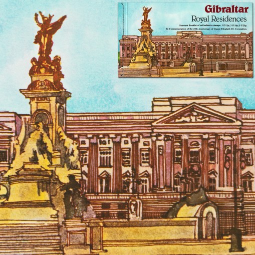 Znaczki samoprzylepne w zeszyciku filatelistycznym upamiętniające 25. rocznicę wstąpienia na tron królowej Elżbiety II.