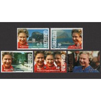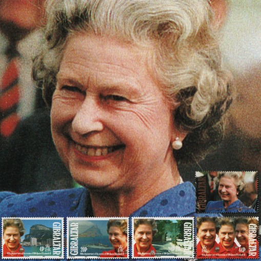 Na znaczkach widnieją portrety monarchini na tle widoków z Gibraltaru.