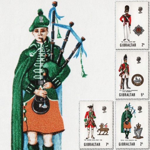 Na znaczkach widnieją mundury następujących brytyjskich formacji wojskowych: