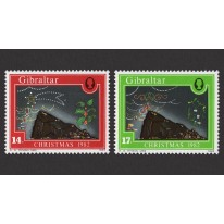 Na znaczkach widnieje Skała Gibraltaru nocą oraz iluminacje bożonarodzeniowe.