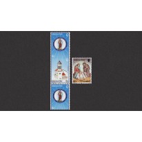 Dwa pierwsze znaczki zostały wydane w pasku, przy czym dzieli je nie ząbkowanie a perforacja (t.j. oba ząbkowane są tylko z trzech stron). W tym samym pasku znajduje się także znaczek przedstawiający świętego Józefa ząbkowany z czterech stron.