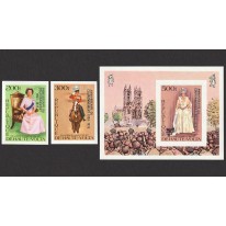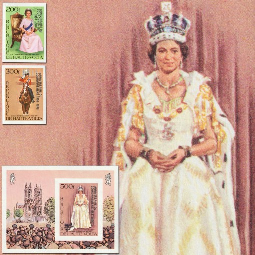 Znaczki i blok wydane rok wcześniej z okazji 25-lecia rządów królowej Elżbiety II, tym razem ze srebrnym nadrukiem upamiętniającym 25. rocznicę koronacji monarchini.