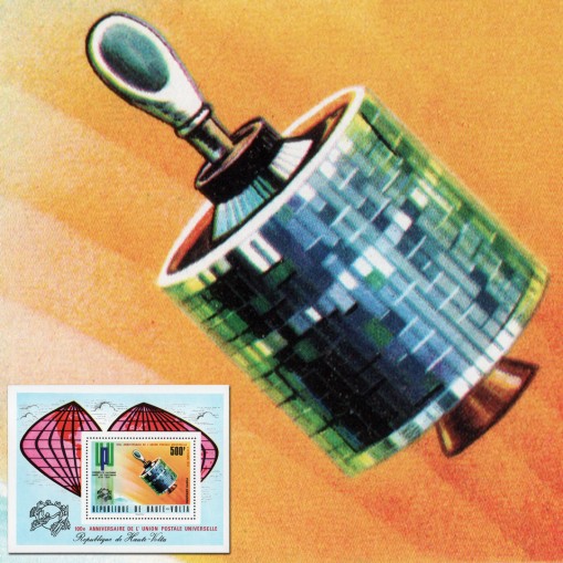 Na znaczku widnieje satelita telekomunikacyjny Telstar.