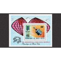 Znaczek w bloku upamiętniający stulecie Światowego Związku Pocztowego. Walor ten wydano wcześniej tego samego roku, tym razem dodając nadruk „100e Anniversaire de l’Union Postale Universalle”.