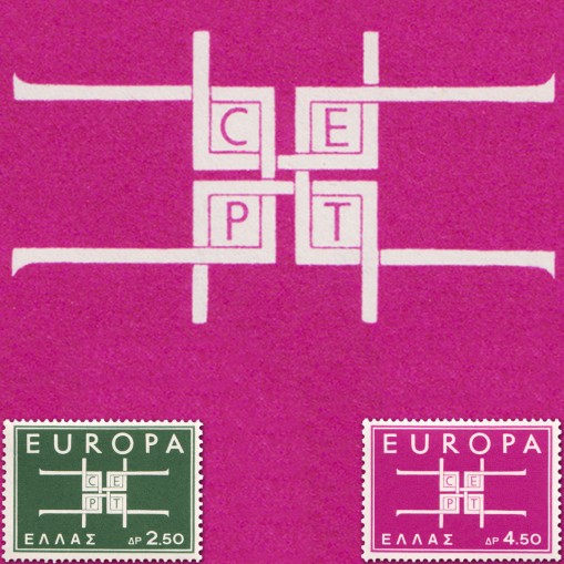 Emisja EUROPA CEPT. Znaczki tej emisji mają rozpoznawalny wśród filatelistów dizajn krzyża, będący projektem norweskiego grafika (Arne Holm). Krzyż był zbudowany z przecinających się liter „U" (od angielskiego słowa „United" - „Zjednoczeni", czy „Zunifikowani"), z literami CEPT w środku.