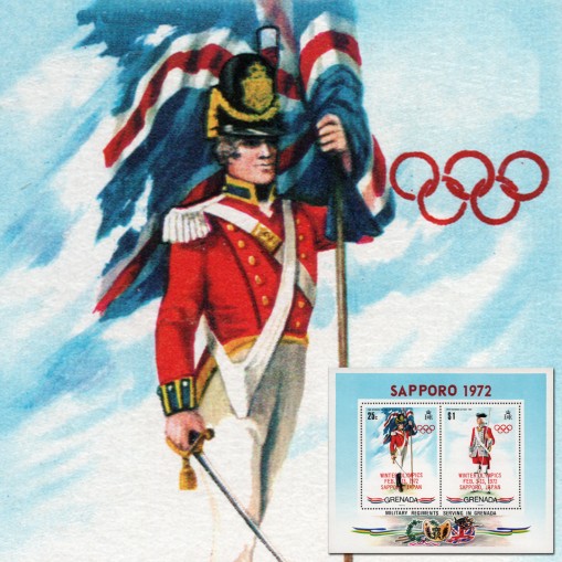 Blok wydany pierwotnie rok wcześniej, tym razem z nadrukiem upamiętniającym zimowe igrzyska olimpijskie w Sapporo.