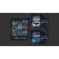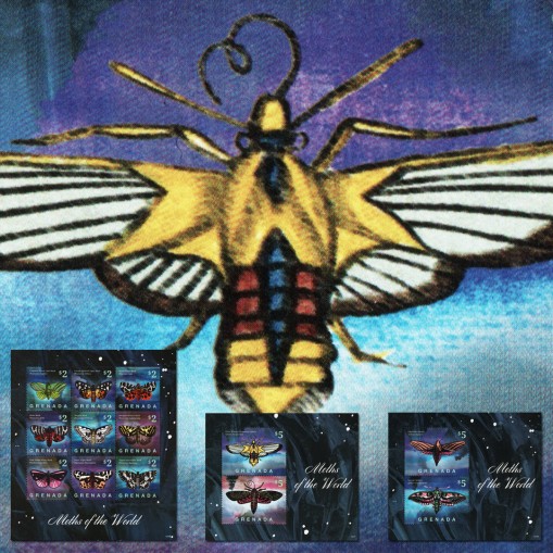 Seria w arkuszu i wa bloki, na znaczkach których widnieją następujące gatunki ciem: