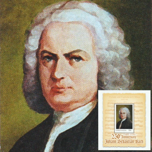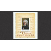 Znaczek w bloku upamiętniający 250. rocznicę śmierci niemieckiego kompozytora Johanna Sebastiana Bacha.