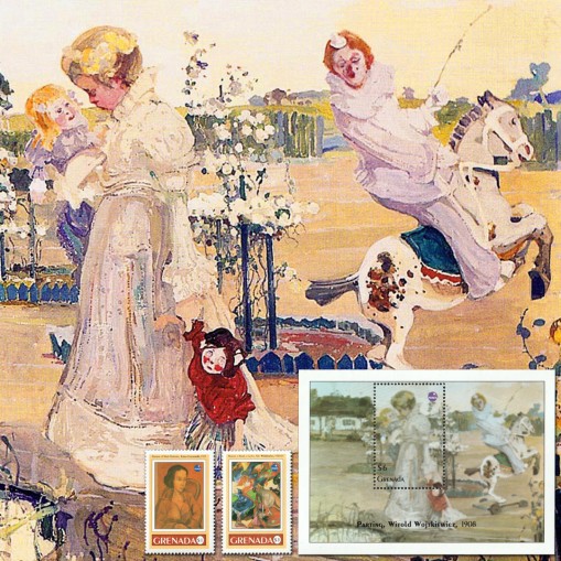 Na znaczkach widnieją dzieła malarstwa polskiego, kolejno: