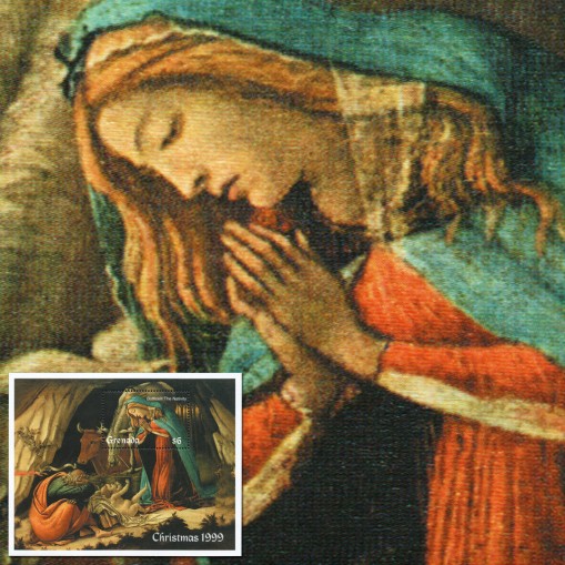 Na znaczku widnieje obraz Botticelliego przedstawiający narodziny Chrystusa.