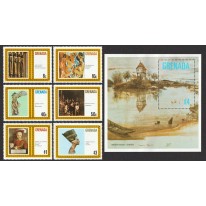 Znaczki i blok, na których widnieją słynne dzieła sztuki, kolejno: