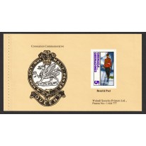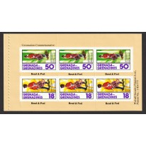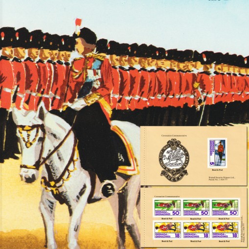 Samoprzylepne znaczki na dwóch stronach z zeszyciku filatelistycznego upamiętniające 25. rocznicę wstąpienia na tron królowej Elżbiety II.