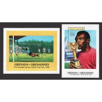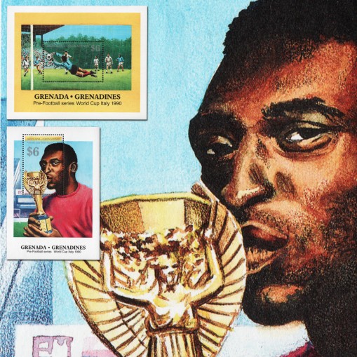 Na znaczkach widnieje bramkarz podczas akcji na boisku oraz brazylijski piłkarz Pelé z pucharem Jules’a Rimeta.