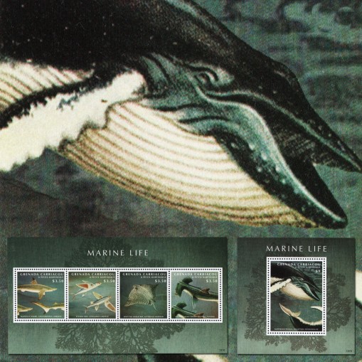 Seria w arkuszu i blok, na znaczkach których widnieją następujące gatunki fauny morskiej: