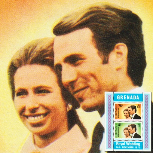 Znaczki w bloku wydane pierwotnie dla Grenady z okazji ślubu księżniczki Anny (córki królowej Elżbiety II) i Marka Phillipsa, tym razem z nadrukami „Grenadines”.
