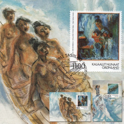 Seria na kartach maksimum promująca sztukę grenlandzką i upamiętniająca 10. rocznicę śmieci artysty imieniem Hans Lynge.