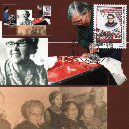 Na znaczku i karcie widnieje założycielka i grenlandzkie rękodzieło.