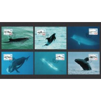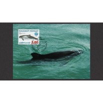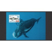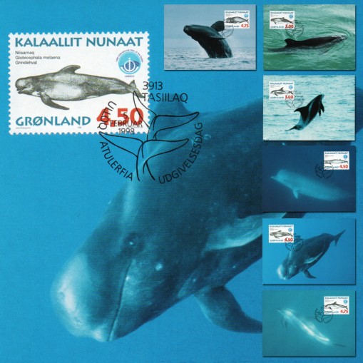 Seria na kartach maksimum, na znaczkach której widnieją następujące gatunki waleni występujące na Grenlandii: