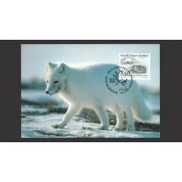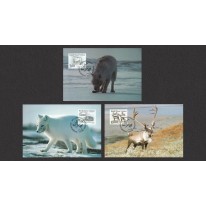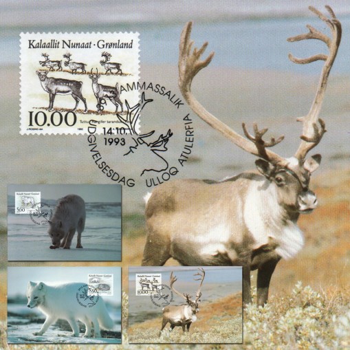 Seria na kartach maksimum, na znaczkach której widnieją następujące gatunki ssaków występujące na Grenlandii: wilk, lis polarny i renifer.