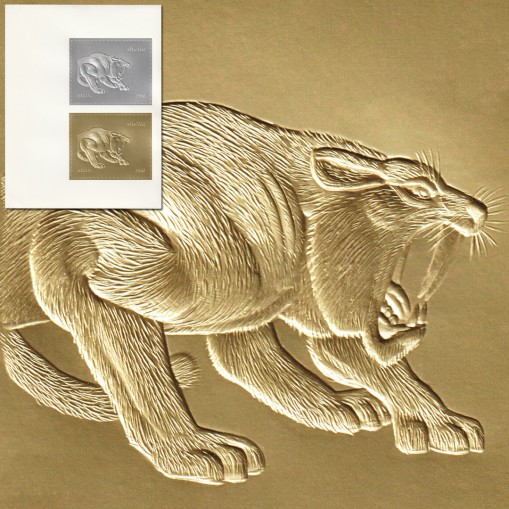 Na znaczku przedstawiono smilodona, czyli tygrysa szablozębnego (albo kota szablozębnego) – wymarłego ssaka drapieżnego, który żył prawdopodobnie od około 3 mln do 10 tys. lat temu w Ameryce Północnej i Południowej.