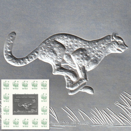 Na znaczku przedstawiono geparda w biegu, a także logo WWF, czyli Światowego Funduszu na rzecz Przyrody (ang. World Wide Fund for Nature, dawniej World Wildlife Fund).