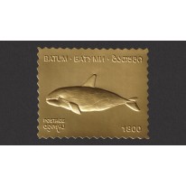 Nieautoryzowany znaczek wytłoczony w złotej folii, wprowadzony na rynek filatelistyczny pod koniec zeszłego lub w tym wieku jako oficjalny walor pocztowy Batumi, stolicy autonomicznej republiki Adżarii w Gruzji.
