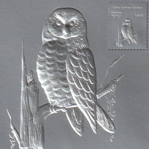 Nieautoryzowany znaczek wytłoczony w srebrnej folii, wprowadzony na rynek filatelistyczny pod koniec zeszłego lub w tym wieku jako oficjalny walor pocztowy Batumi, stolicy autonomicznej republiki Adżarii w Gruzji.
