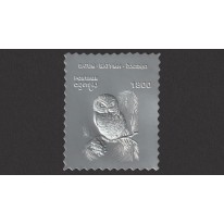 Na znaczku przedstawiono sowę siedzącą na gałęzi z szyszką.