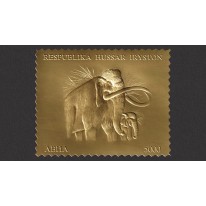 Nieautoryzowany znaczek poczty lotniczej wytłoczony w złotej folii, wprowadzony na rynek filatelistyczny pod koniec zeszłego lub w tym wieku jako oficjalny walor pocztowy Osetii Południowej.