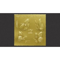 Nieautoryzowany znaczek poczty lotniczej wytłoczony w złotej folii, wprowadzony na rynek filatelistyczny jako oficjalny walor pocztowy Osetii Południowej.