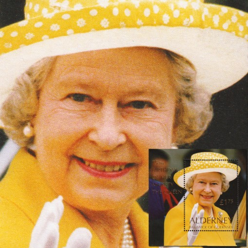 Znaczek w bloku upamiętniający 75. urodziny brytyjskiej królowej Elżbiety II.