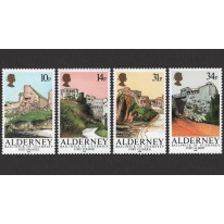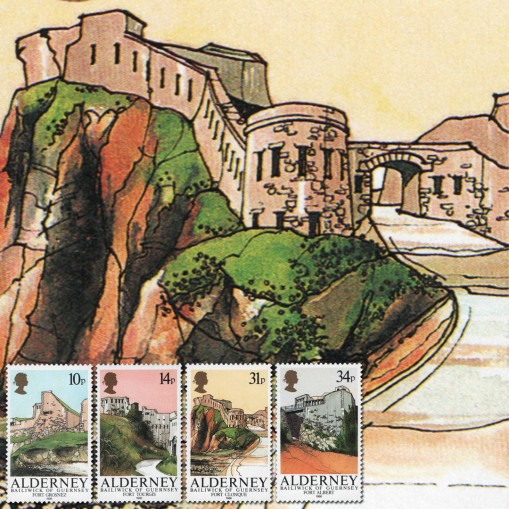 Na znaczkach widnieją następujące twierdze położone na Alderney: Fort Grosnez, Fort Tourgis, Fort Clonque i Fort Albert.