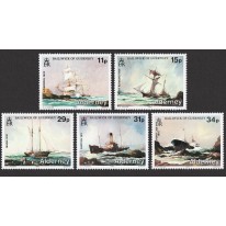 Na znaczkach widnieją następujące statki, które rozbiły się u wybrzeży Alderney: żaglowiec „Liverpool” w 1902 roku, szkuner „Petit Raymond” w 1906 roku, jacht „Marina” w 1910 roku, parowiec „Burton” w 1911 roku i tankowiec „Point Law” w 1975 roku.