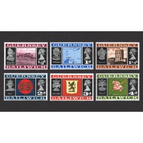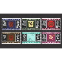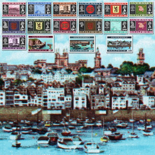 Pierwsza seria obiegowa wydana dla Guernsey, z nominałami w szylingach i pensach sprzed decymalizacji funta.