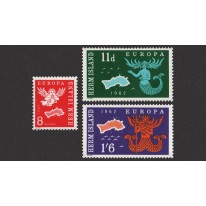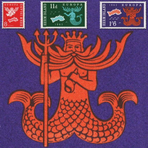 Nieautoryzowane znaczki nawiązujące do emisji EUROPA CEPT z 1962 roku, na których przedstawiono mapę wyspy, aniołka, syrenę i Neptuna.