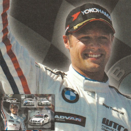 Blok wydany z okazji trzeciego z rzędu uzyskania przez Andy'ego Priaulxa tytułu mistrza świata w ogólnoświatowych wyścigowych mistrzostwach samochodów turystycznych (ang. World Touring Car Championship - WTCC).