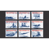 Na znaczkach widnieją okręty i samoloty sił japońskich i amerykańskich.