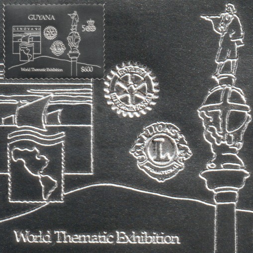 Srebrny znaczek upamiętniający międzynarodową wystawę filatelistyczną „Genova’92” w Genui.