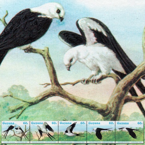 Na znaczkach widnieje jaskólak (Elanoides forficatus).