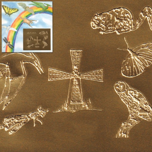 Złoty znaczek w bloku promujący ochronę przyrody. Na znaczku przedstawiono różne zwierzęta latające: pterodaktyla, ważkę, motyla, sowę i latającą wiewiórkę, a także tradycyjny młyn wiatrowy. Na samym bloku widnieją te same gatunki zwierząt na tle tęczy.