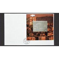 Srebrny znaczek w bloku na kopercie FDC upamiętniający międzynarodową wystawę filatelistyczną Genova’92 w Genui.