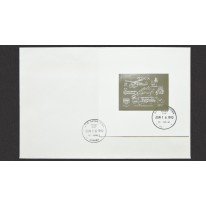 Srebrny znaczek w bloku na kopercie FDC upamiętniający międzynarodową wystawę filatelistyczną Genova’92 w Genui.