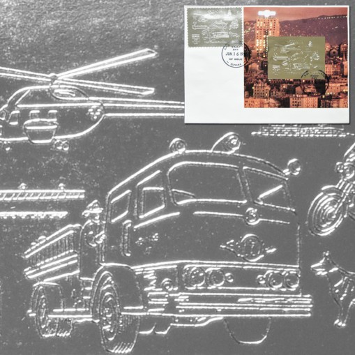 Znaczki tłoczone są w srebrnej folii. Znaczek w bloku nie posiada perforacji.
